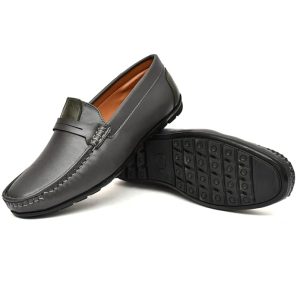 Men Leather Penny Loafers, Shoes, Grey